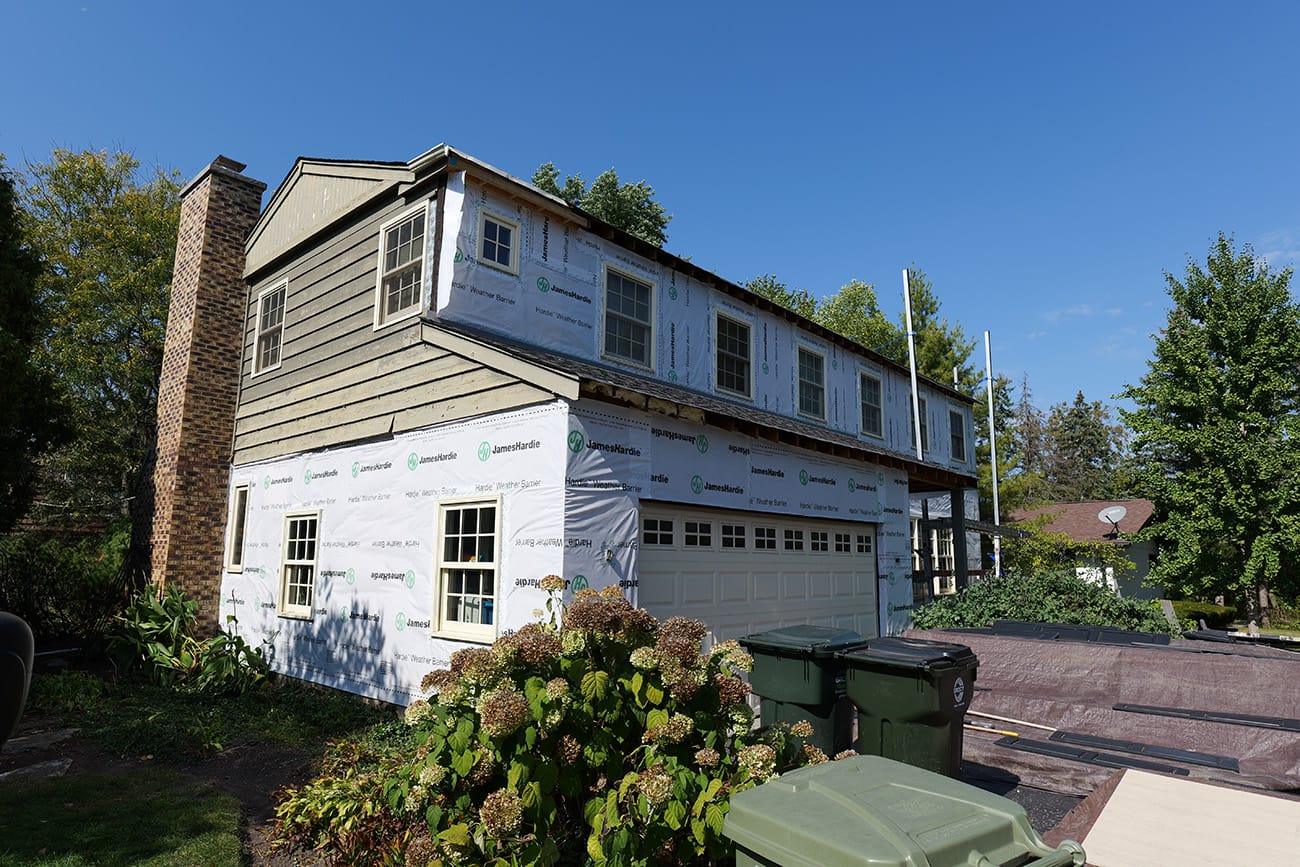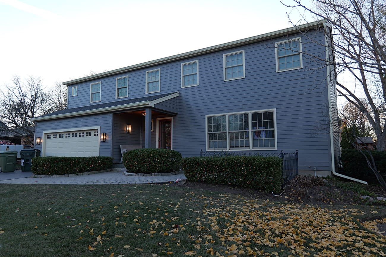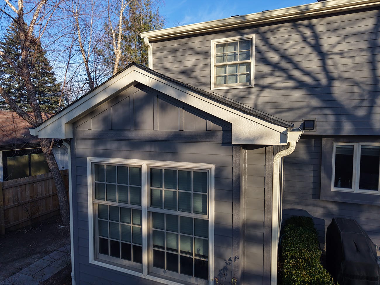 Project Type: Full siding replacement, gutter replacement, attic insulation, soffit, fascia, and trim upgrade on a two-story home.