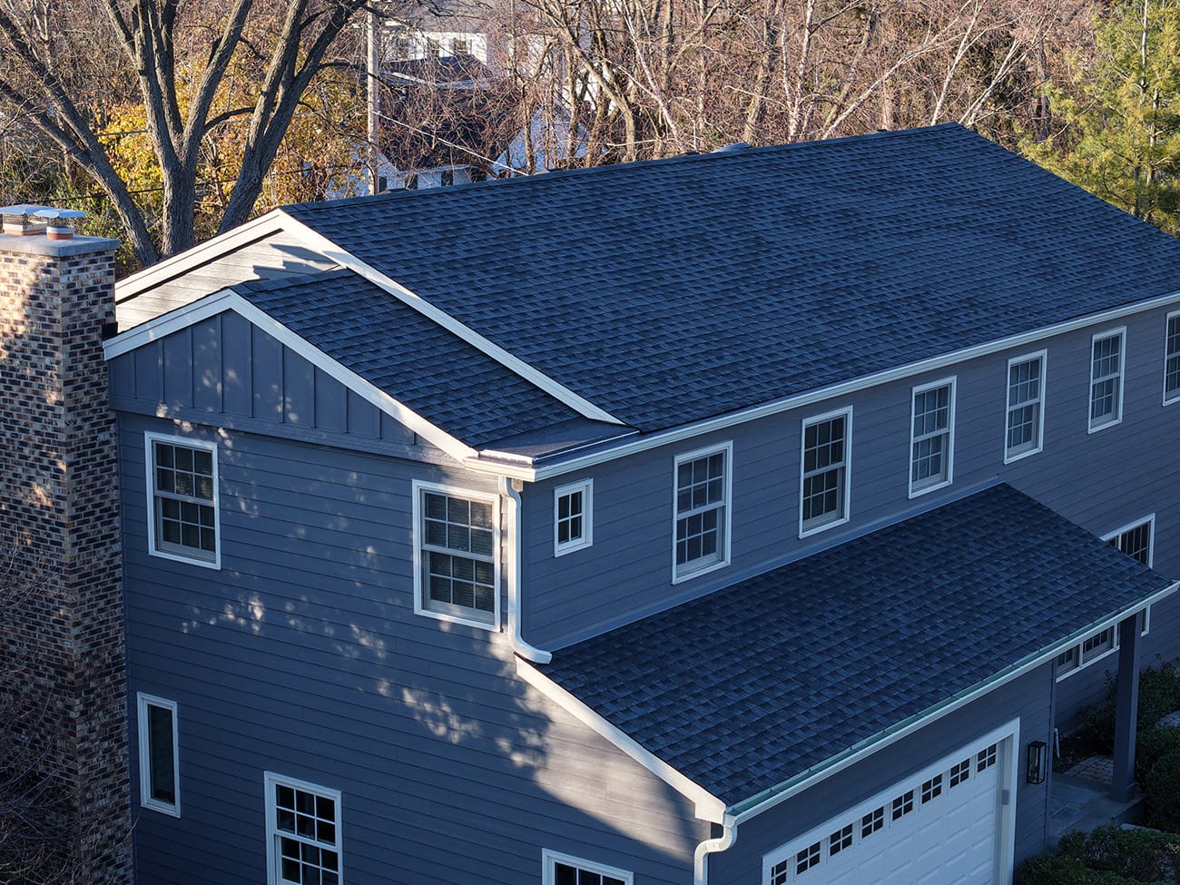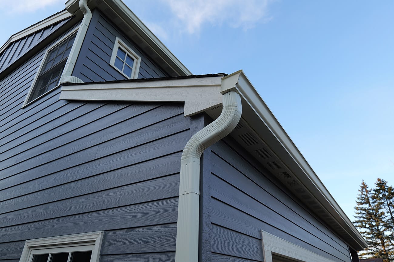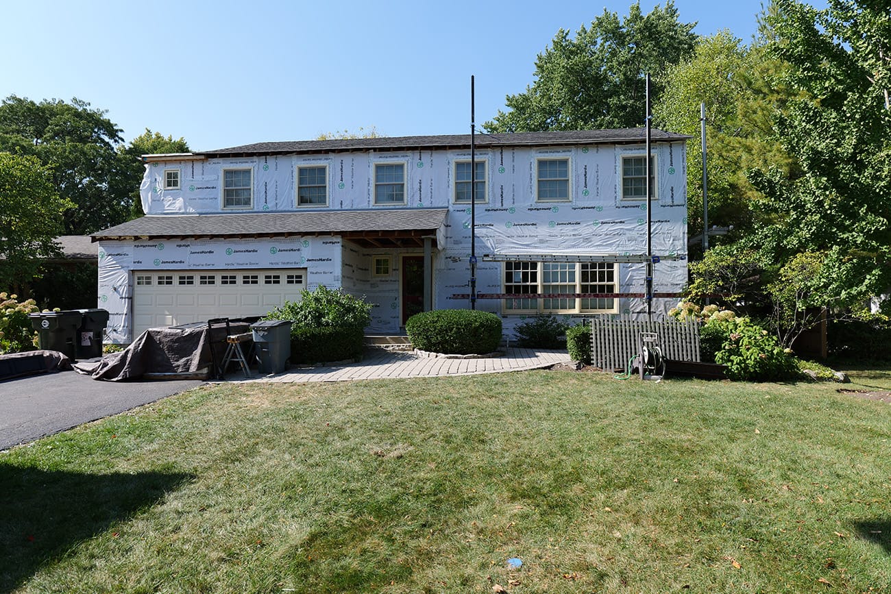 Project Type: Full siding replacement, gutter replacement, attic insulation, soffit, fascia, and trim upgrade on a two-story home.
