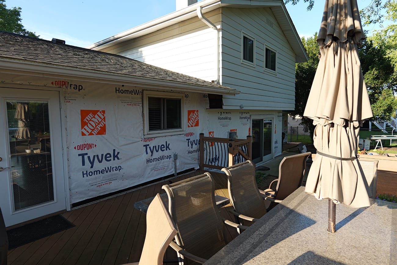Demo began; uncovered no housewrap and missing flashings → we paused, showed findings, and corrected with Tyvek + proper flashing.