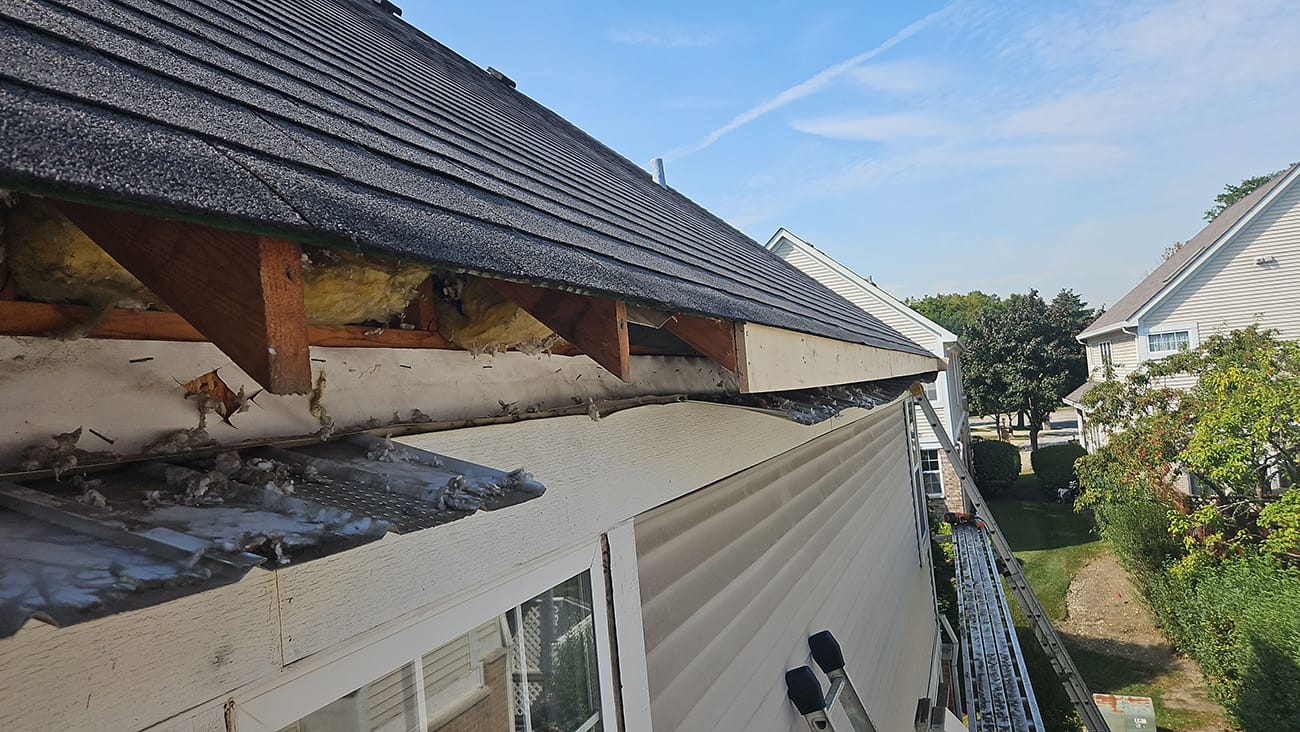 When Chris moved into her Westchester home, one of the first frustrations was the gutter system. The house had an OMNI fascia-style gutter — a flat-faced design attached directly to rafters. While once considered innovative, OMNI systems are difficult to service and nearly impossible to re-pitch once they begin sagging.